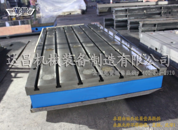 T型槽焊接平臺:采用HT200材質鑄造而成,工作面去刀紋或人工刮研,工作面按使用要求加工有T型槽。適合焊接需要裝配的簡單工件,但需要自己掉作工裝,如果是小批量多樣話的焊接件,就需要制作不同的工裝。