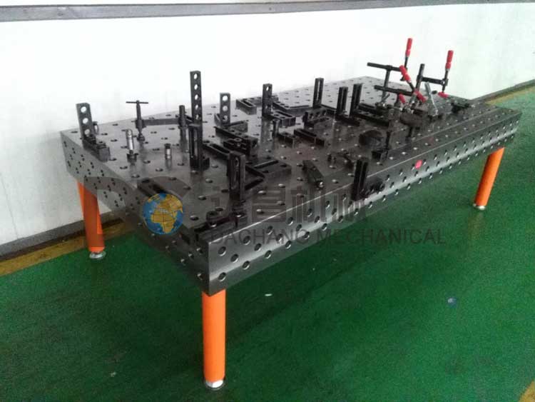三維柔性組合焊接工裝是根據機械加工中焊接夾具的原理構思而成,通過平臺基礎班與槽型孔附件,附件與附件相互搭配連接,能夠快速形成一套焊接組合工裝。