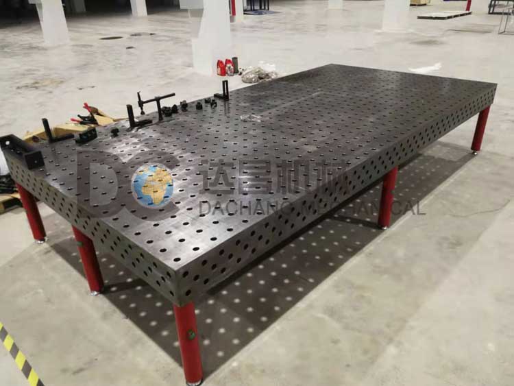 所有模塊加工精度均較高,工作平臺上任意兩個孔的公差在±0.1mm以內(nèi),可以滿足焊接加工的需要。在裝配或焊接過程中,使用定位塊、連接塊、夾緊器和支撐塊,能夠?qū)ぜ?zhǔn)確定位,需要焊接的工件可以被穩(wěn)定地固定在各個定位點或定位面上。如果工件本身的幾何尺寸不準(zhǔn)確,也可以很快被檢測出來,在初加工工序中便被消除。