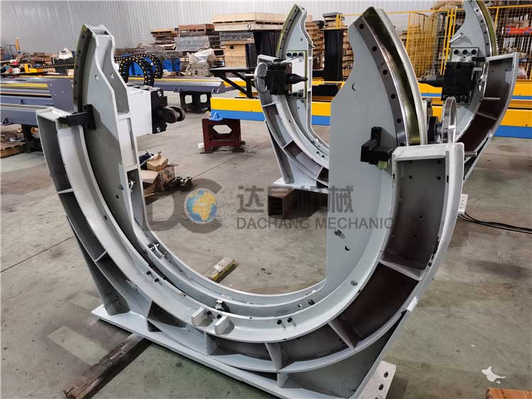 C型變位機(jī)又名滾轉(zhuǎn)機(jī)適用于長條形工件的自動化夾緊定位,可配合機(jī)器人實現(xiàn)自動化組對和焊接。在工作時改變產(chǎn)品擺放姿態(tài)、位置的自動化旋轉(zhuǎn)/翻轉(zhuǎn)裝備,在機(jī)器人編程時將變位機(jī)的控制程序輸入到機(jī)器人控制系統(tǒng)中,可以跟機(jī)器人實現(xiàn)協(xié)調(diào)運動,對機(jī)器人的靈活度進(jìn)行補(bǔ)償,提高工作效率。